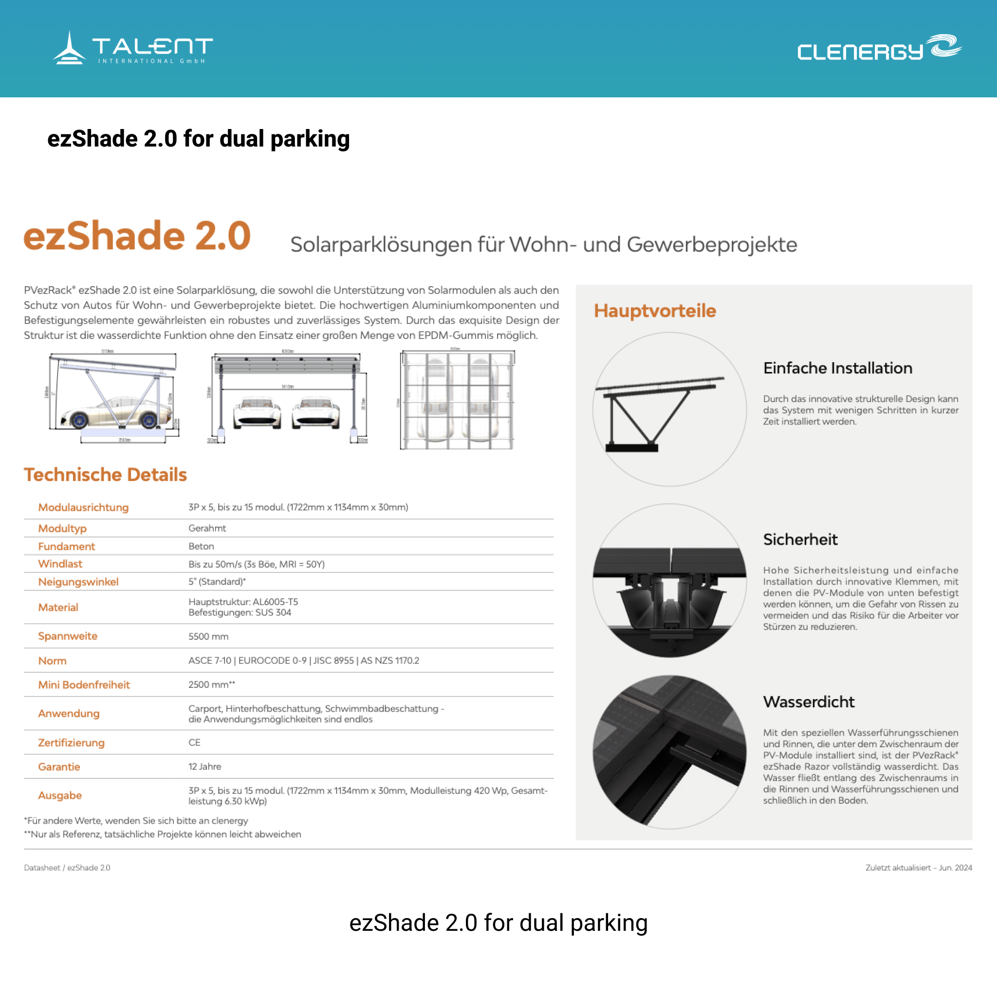 Clenergy PV-Gestellsystem ezShade 2.0 PV-Carport