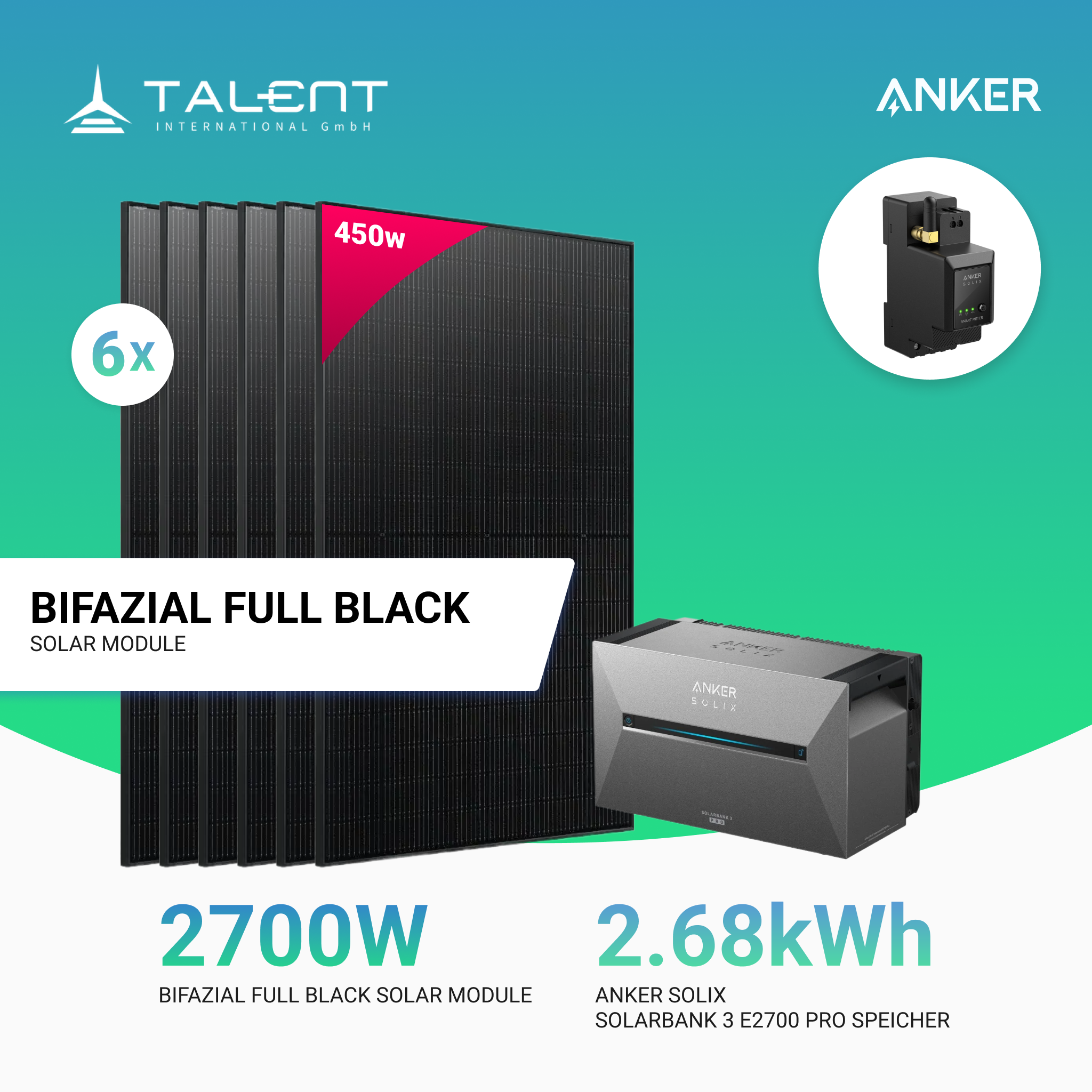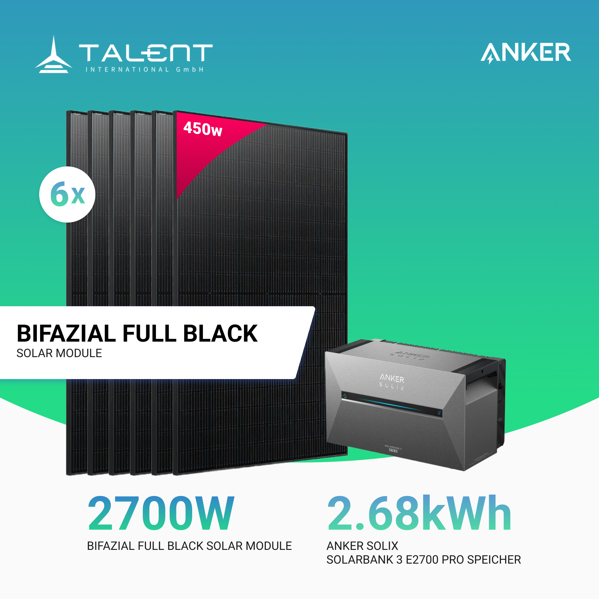 Solarmodule – 6 × 450 W bifazial Full Black Module