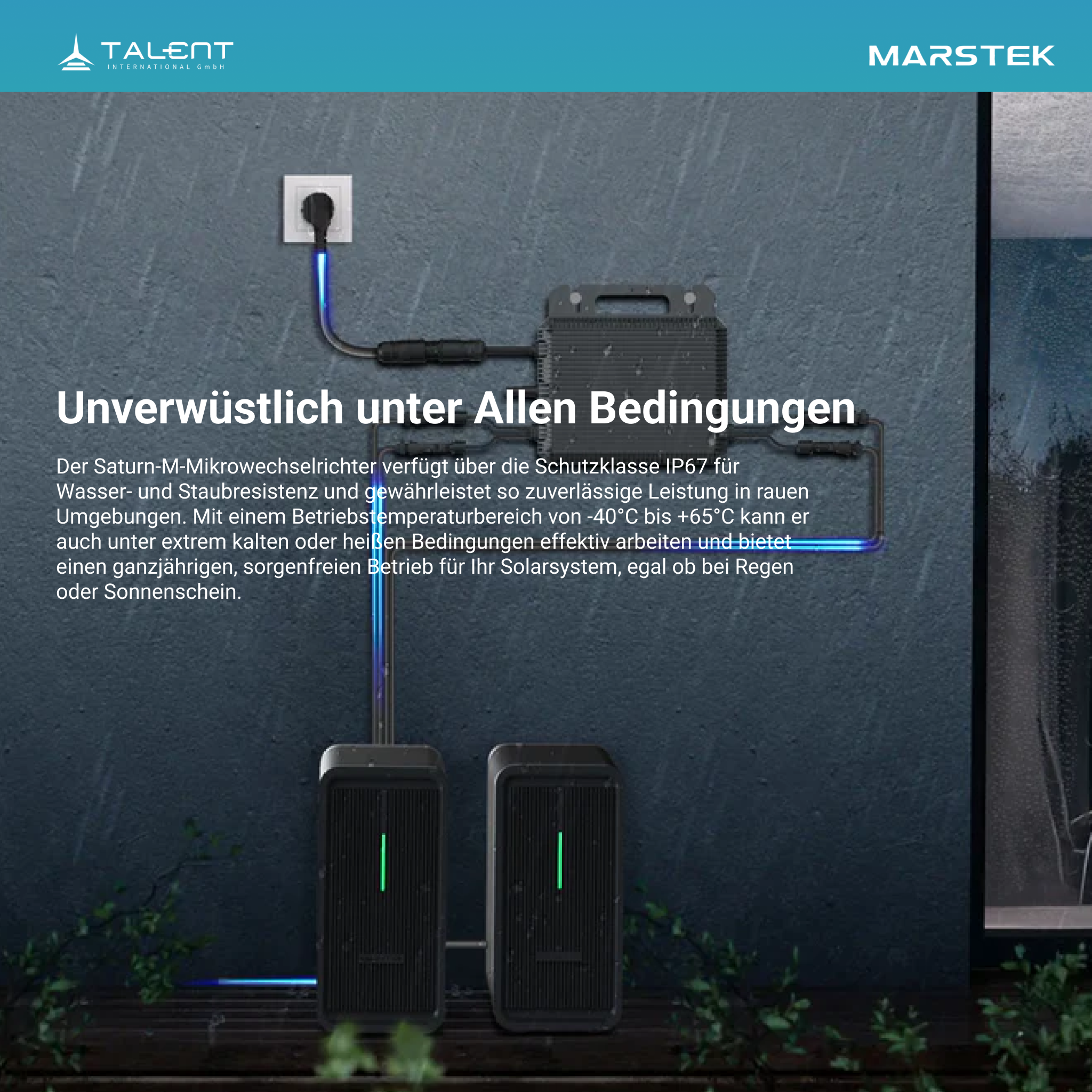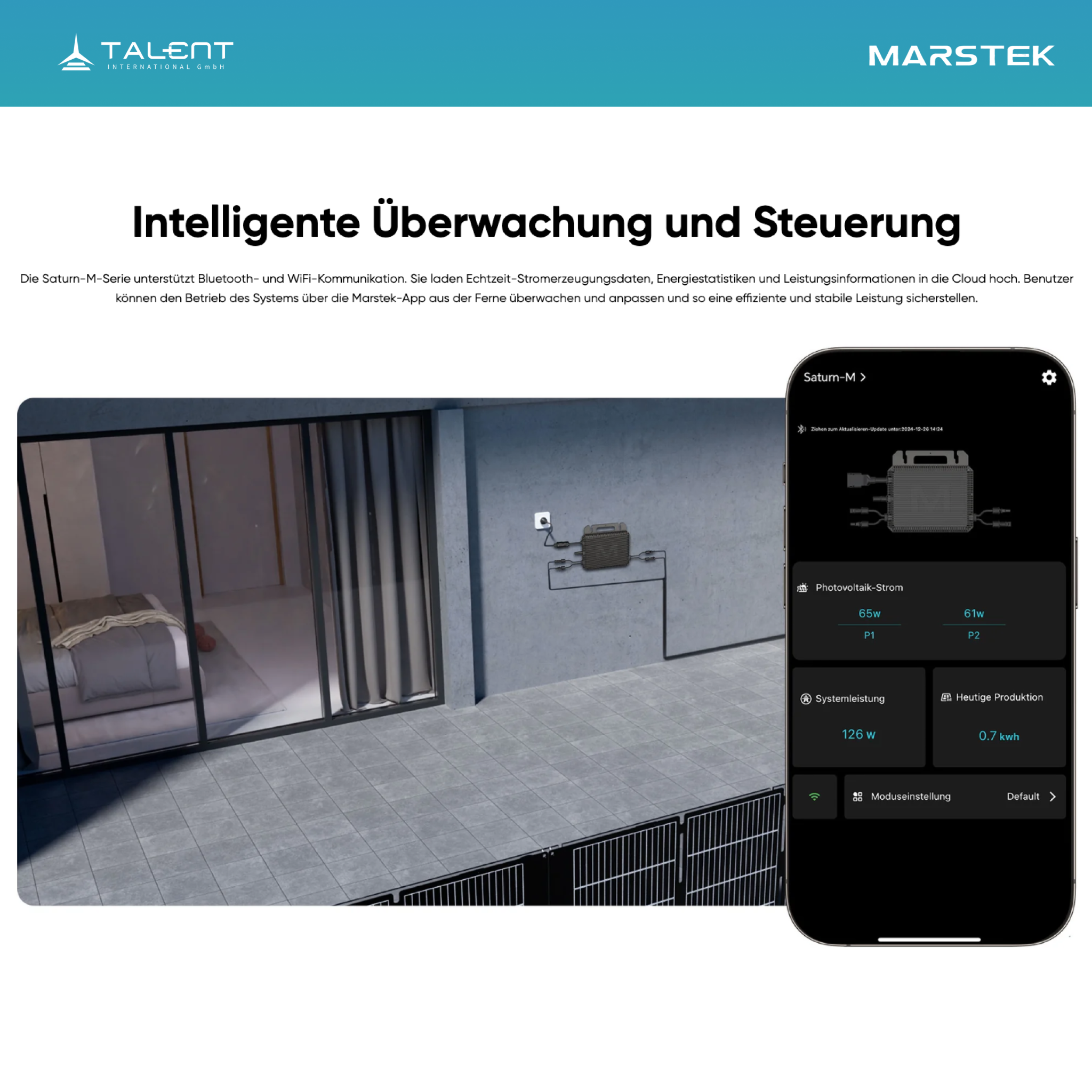 Der von den Solarmodulen erzeugte Strom fließt durch den Saturn B2500-D zum Mikro-Wechselrichter und versorgt Ihre Haushaltsverbraucher, sodass Sie Netzbezug und Stromkosten senken.
