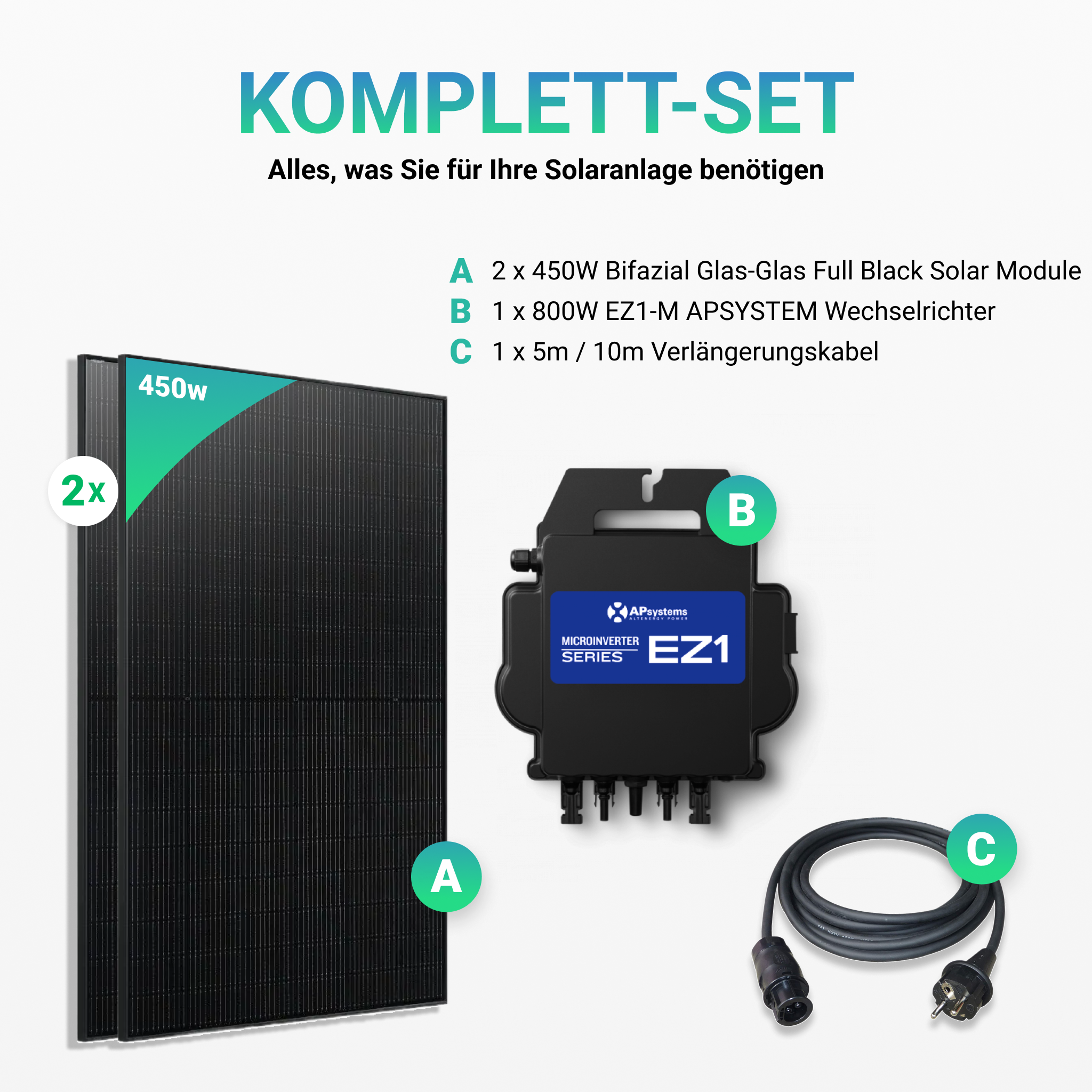 1x 5m Verlängerungskabel. Mit diesem Verlängerungskabel können Sie die Solarmodule so platzieren wie Sie möchten. Das Kabel wurde in einer deutschen Werkstatt konfektioniert und hat Premium-Qualität.