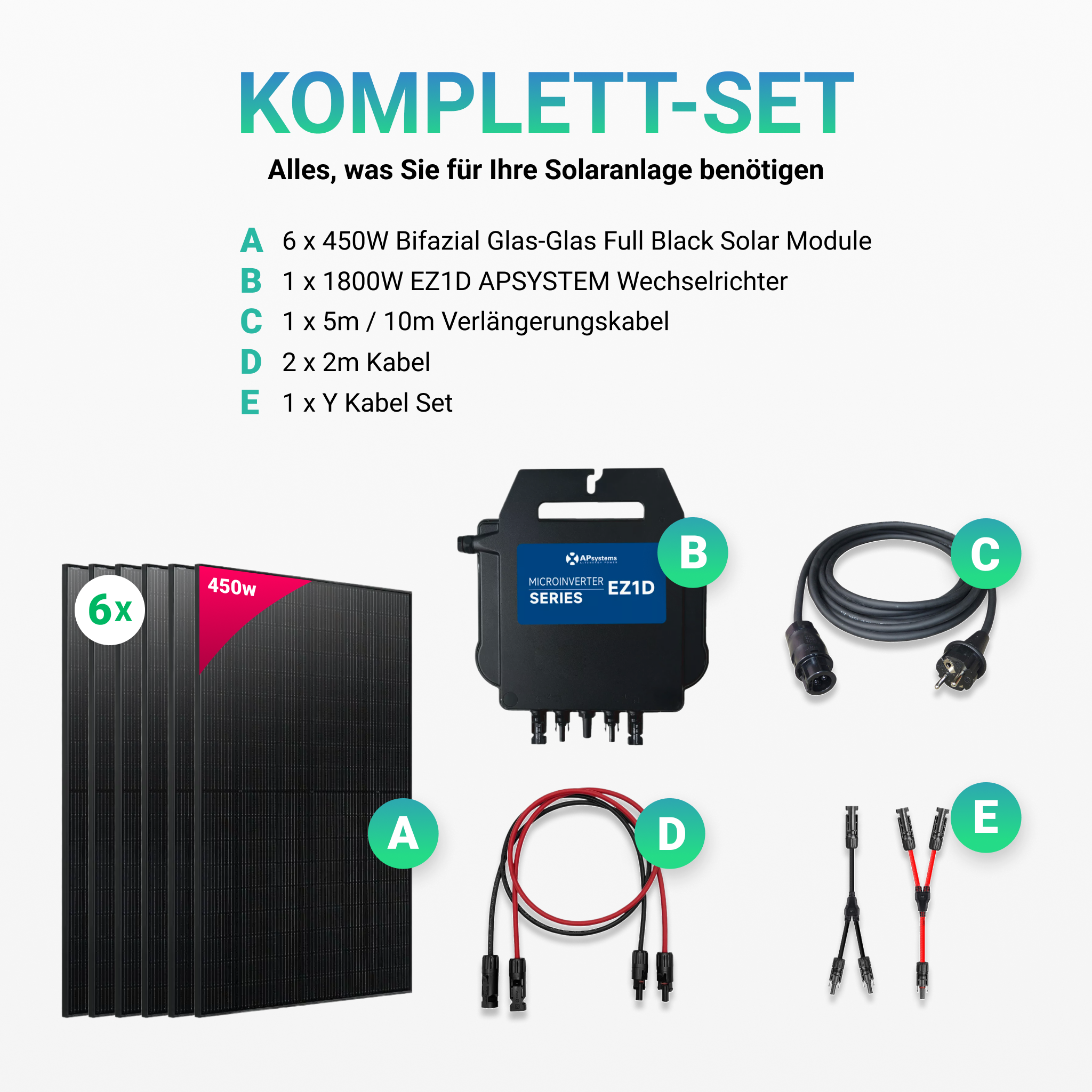 1x 5m Verlängerungskabel. Mit diesem Verlängerungskabel können Sie die Solarmodule so platzieren wie Sie möchten. Das Kabel wurde in einer deutschen Werkstatt konfektioniert und hat Premium-Qualität.