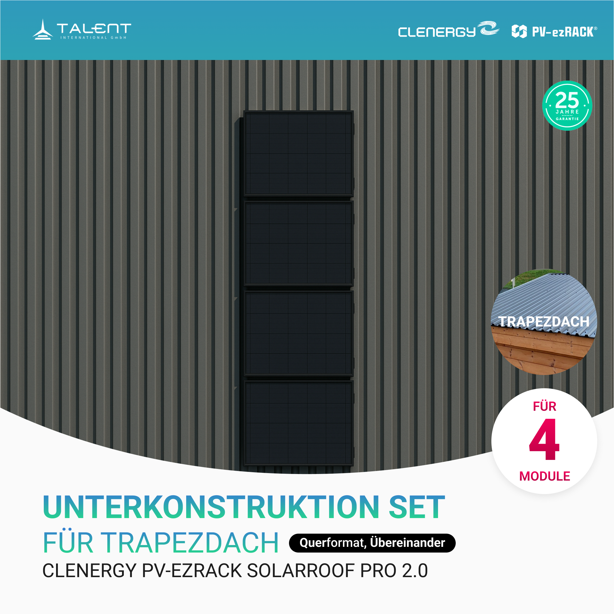 Clenergy PV-ezRack SolarRoof Pro 2.0 Unterkonstruktion Trapezdach Montageset für 2 Module (Querformat, Übereinander)