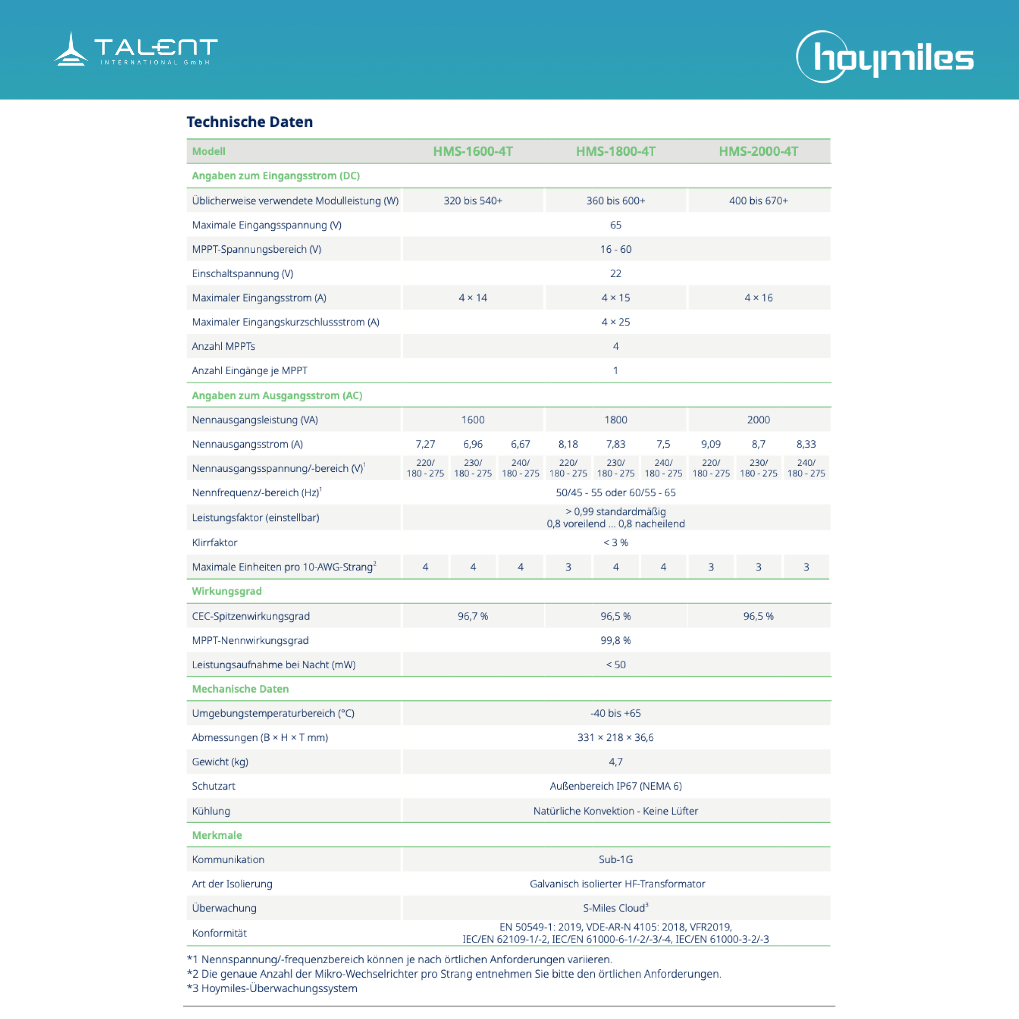 Dabei liefert der HMS-1600 bis zu 1600W Leistung und kann mit Modulen von 320Wp bis 540Wp optimal arbeiten.