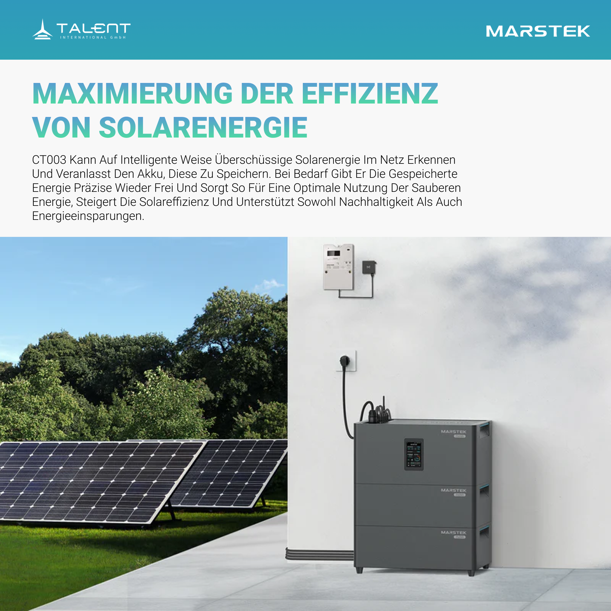 MARSTEK CT003 liest Echtzeitdaten Ihres Stromzählers aus und passt die Energieverteilung der Batterie automatisch an. So wird ein effizienter und präziser Stromverbrauch gewährleistet – Sie sparen Energie und profitieren von einem mühelosen, stressfreien Betrieb.