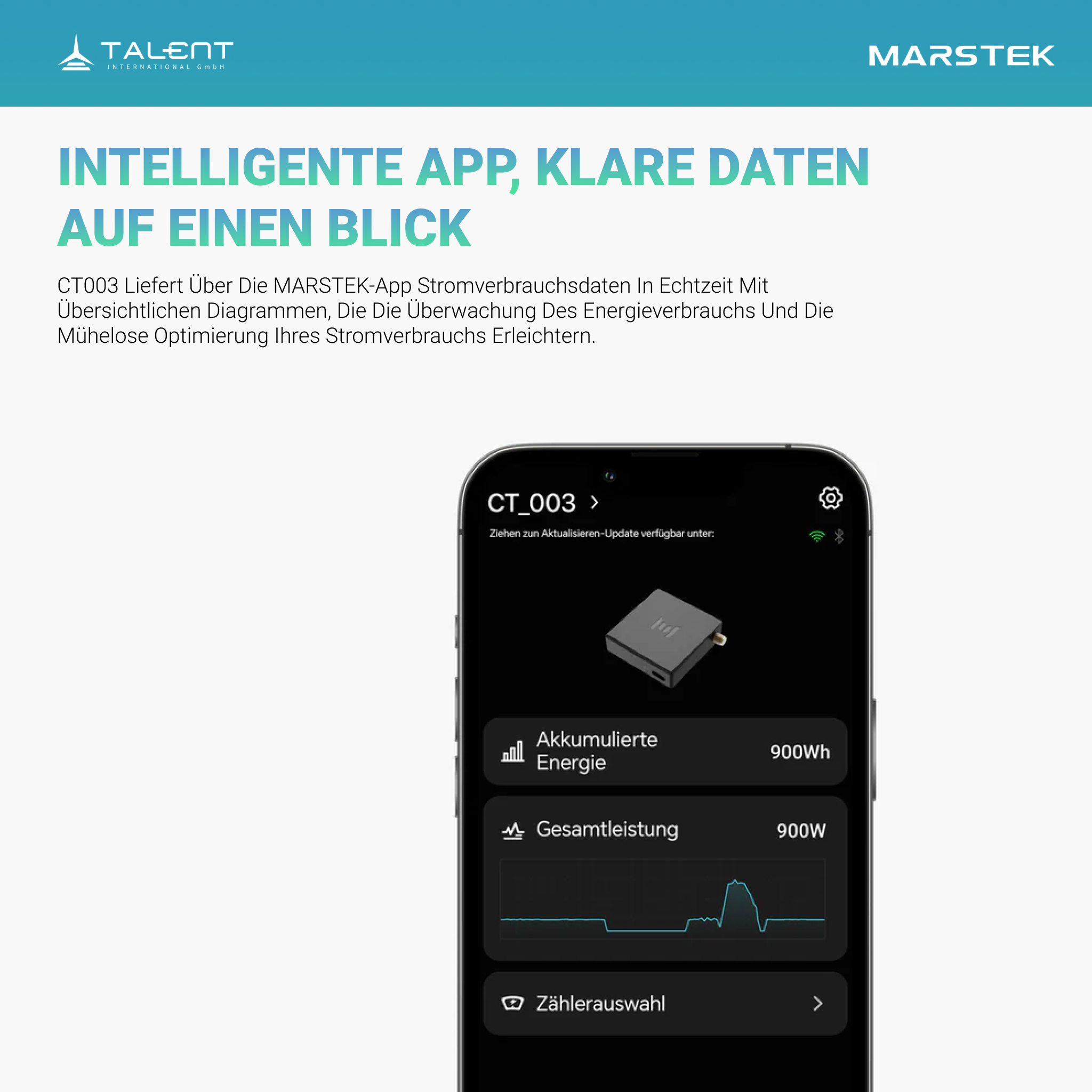 Über die MARSTEK-App erhalten Sie Echtzeit-Verbrauchsdaten sowie übersichtliche Diagramme. So können Sie Ihren Energieverbrauch jederzeit einfach überwachen und gezielt optimieren.