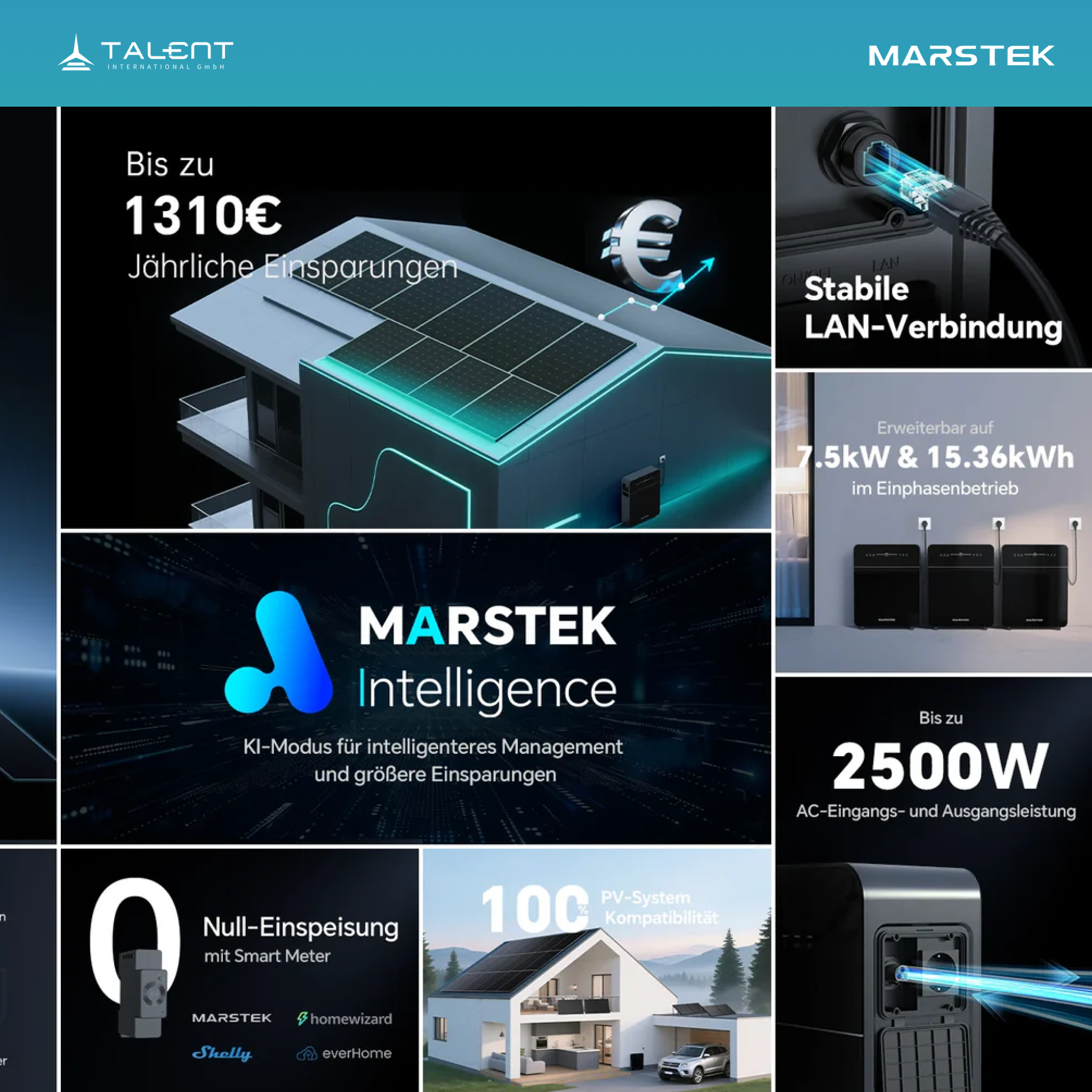 *Upgrade auf 2.500 W kann behördliche Genehmigung erfordern. Installation durch zertifizierte Elektrofachkraft empfohlen.