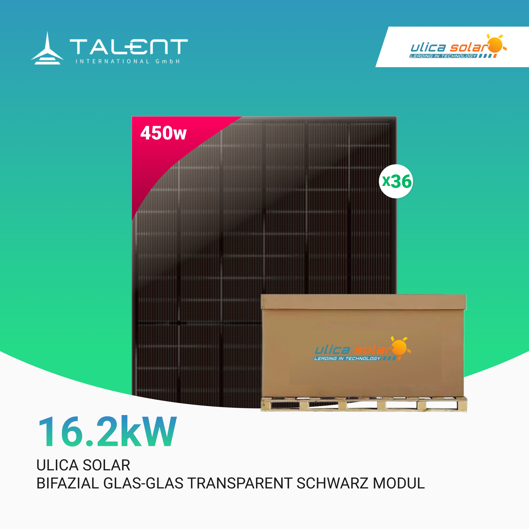 Das leistungsstarke Solarmodul UL-450M-108DGN “Black Jade Flow” von Ulica Solar vereint modernste TOPCon MBB Halbzellen-Technologie mit ästhetischem Design in Full Black Optik. Ideal für anspruchsvolle PV-Anlagen mit hohem Wirkungsgrad und langlebiger Leistung.